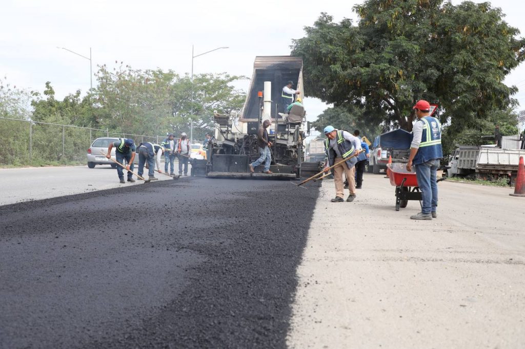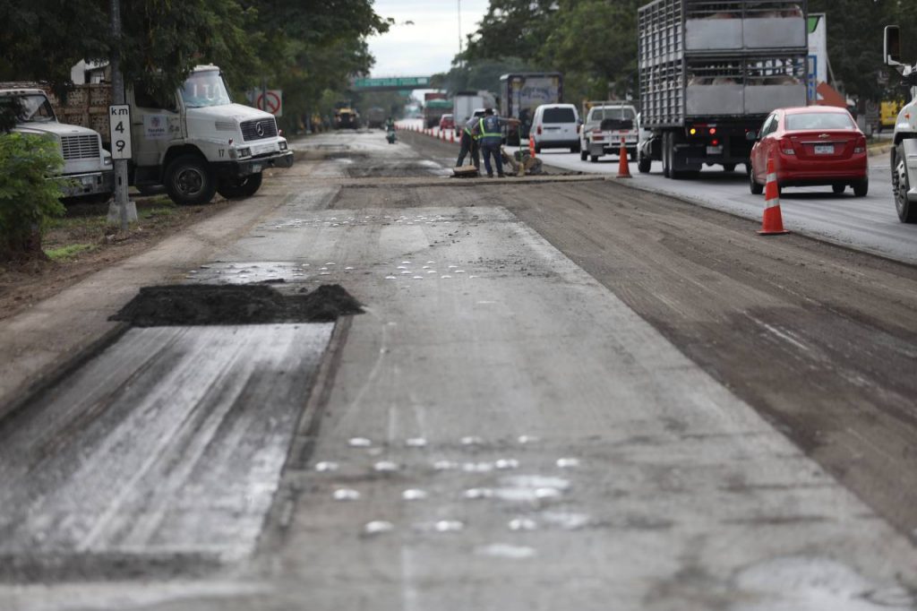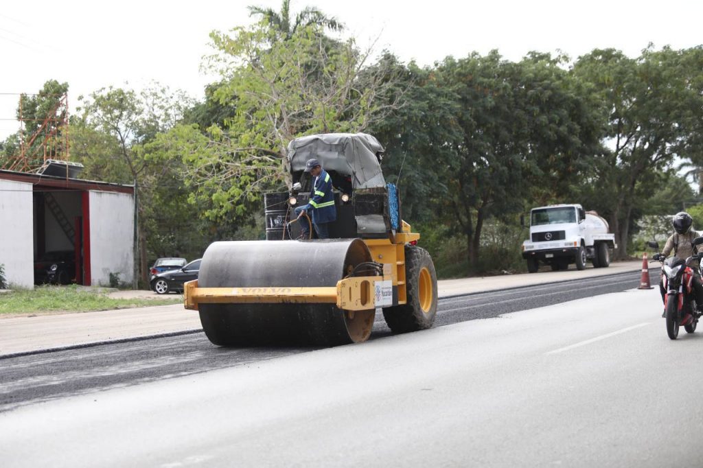 También ya se atendió el tramo que parte del kilómetro 9+800 antes de la rampa de bajada del paso superior vehicular X’matkuil hasta el kilómetro 11+250, frente a las bodegas de Slakami.
