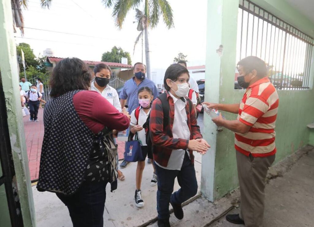 Mérida, Yucatán, 29 de agosto de 2022.- Estudiantes de más de tres mil escuelas tanto públicas como privadas de los niveles de Educación Básica y Media Superior del estado retornaron a las aulas para iniciar en Yucatán el ciclo escolar 2022-2023, en el cual se mantienen los protocolos de seguridad e higiene para cuidar la salud de alumnos y comunidad educativa.
