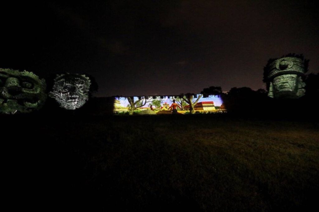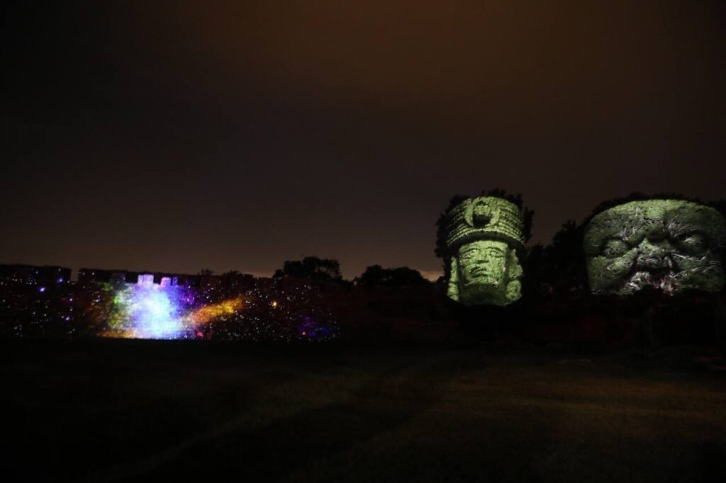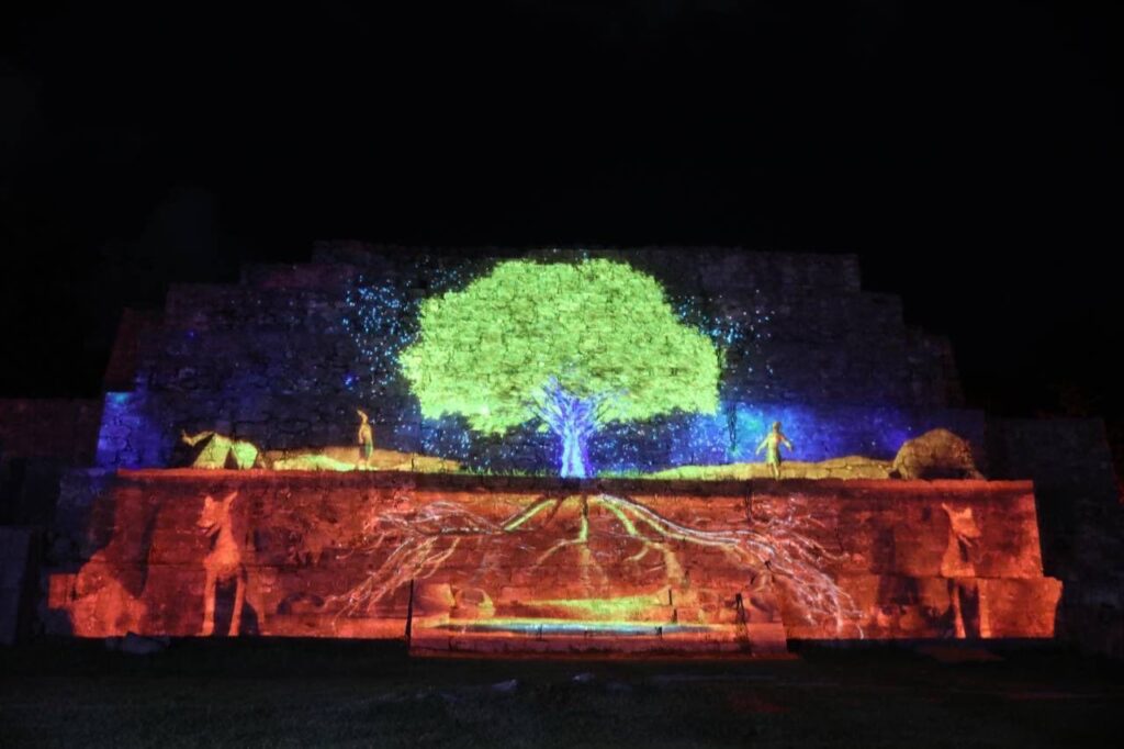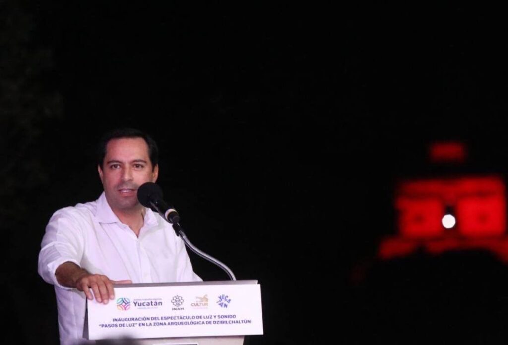 Mérida, Yucatán, 14 de octubre de 2022.- Yucatán suma a su oferta un nuevo producto turístico para la llegada de más visitantes, luego de que el Gobernador Mauricio Vila Dosal inauguró el videomapping “Pasos de luz” en la zona arqueológica Dzibilchaltún, un espectáculo que, a través de tecnología de luces y sonido, impulsa y promueve la belleza y el esplendor artístico y cultural de la región maya.