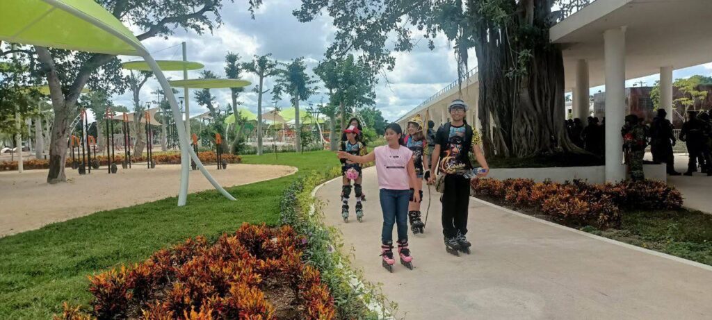 Desde este nuevo punto de reunión para las yucatecas y los yucatecos, el Gobernador y el Presidente entregaron esta importante obra para la sociedad yucateca que es resultado de las gestiones de Vila Dosal y en la cual se realizó la siembra de más de 3,000 árboles, así como una inversión superior a los mil 300 millones de pesos para convertir a la antigua estación de trenes en una opción más para el disfrute de todas y todos.