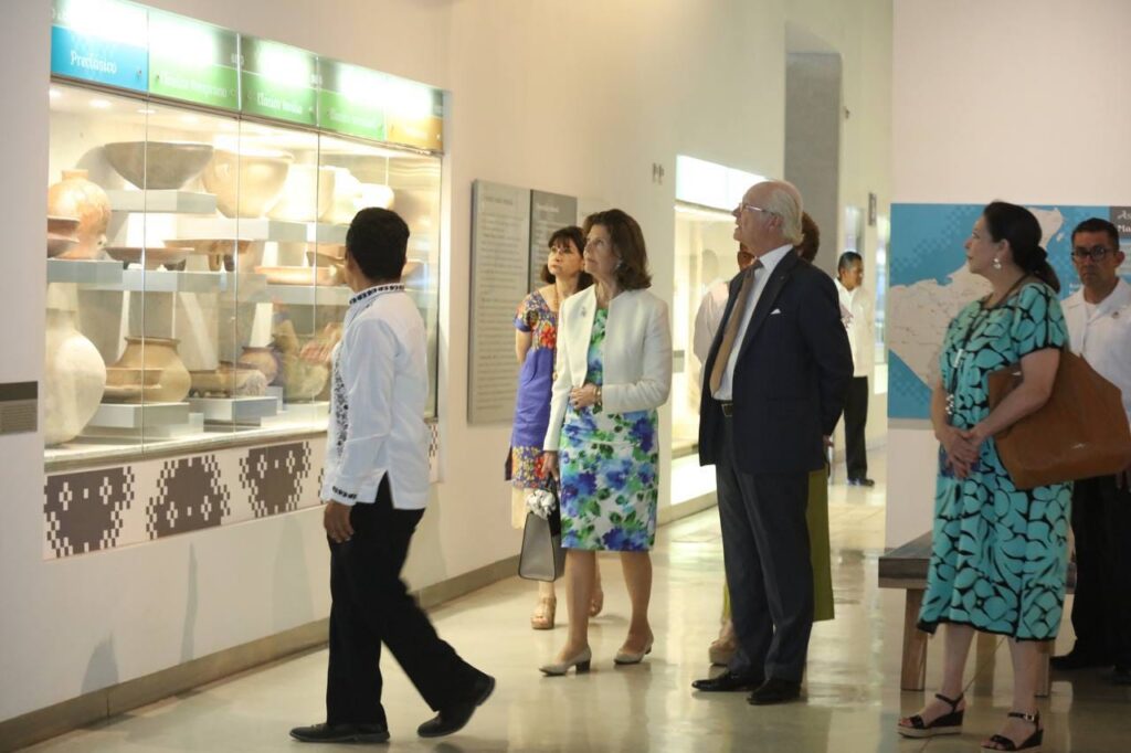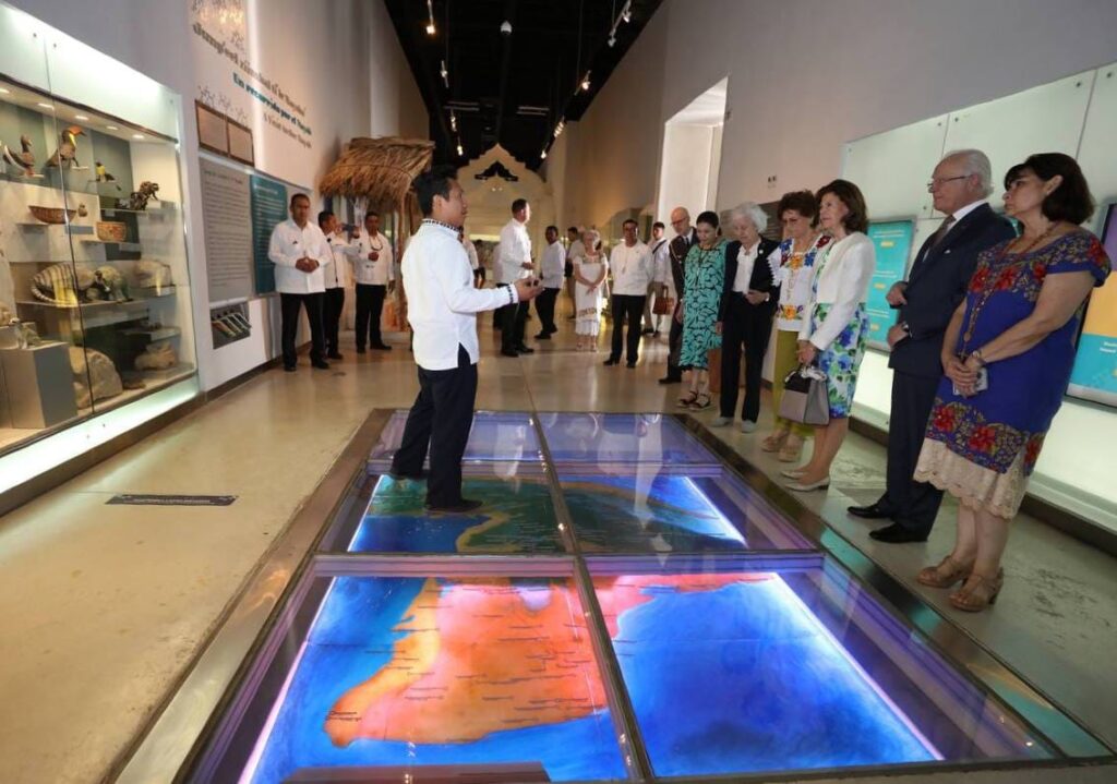 Acompañados de su comitiva y funcionarios del Gobierno del Estado, los monarcas suecos arribaron a las 11:30 horas al Gran Museo del Mundo Maya de Mérida para comenzar un recorrido guiado que incluyó las salas “El Mayab, Naturaleza y Cultura”; “Mayas de hoy”, “Mayas de ayer”, y “Mayas Ancestrales”. Los distinguidos visitantes quedaron maravillados, al adentrarse en el pasado de este pueblo milenario, sin dejar de conocer el panorama actual de esta cultura.