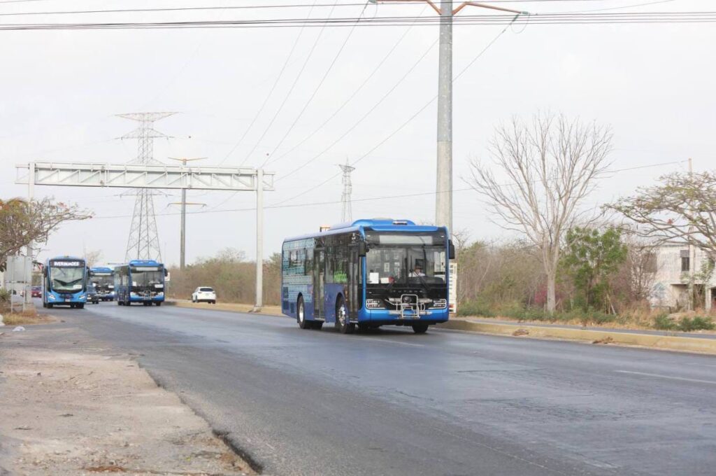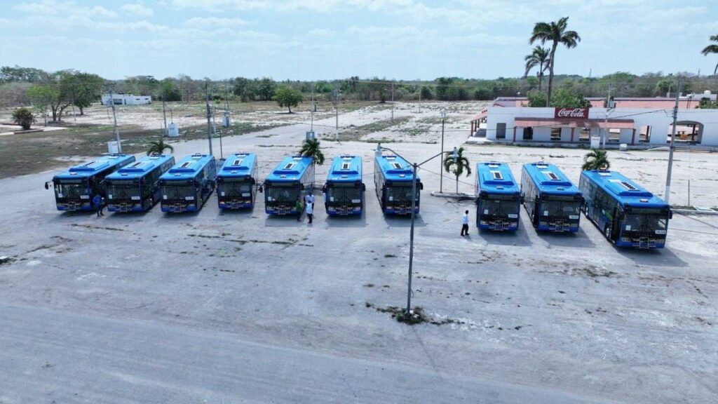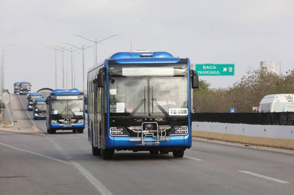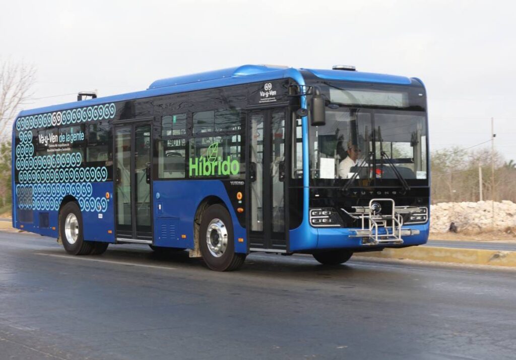 Se trata de unidades Yutong híbridas que fueron trasladadas desde Mérida esta mañana, las cuales combinan un sistema de propulsión diésel-eléctrico, con capacidad para 70 personas, 30 asientos, además son amigables con el medio ambiente, ya que producen 400% menos de emisiones de CO2 al año, lo que significa la siembra de 2,845 árboles.